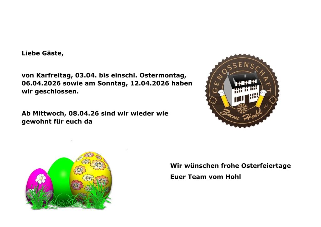 Aufrechterhaltung des Gaststättenbetriebes in der Gaststätte zum Hohl.